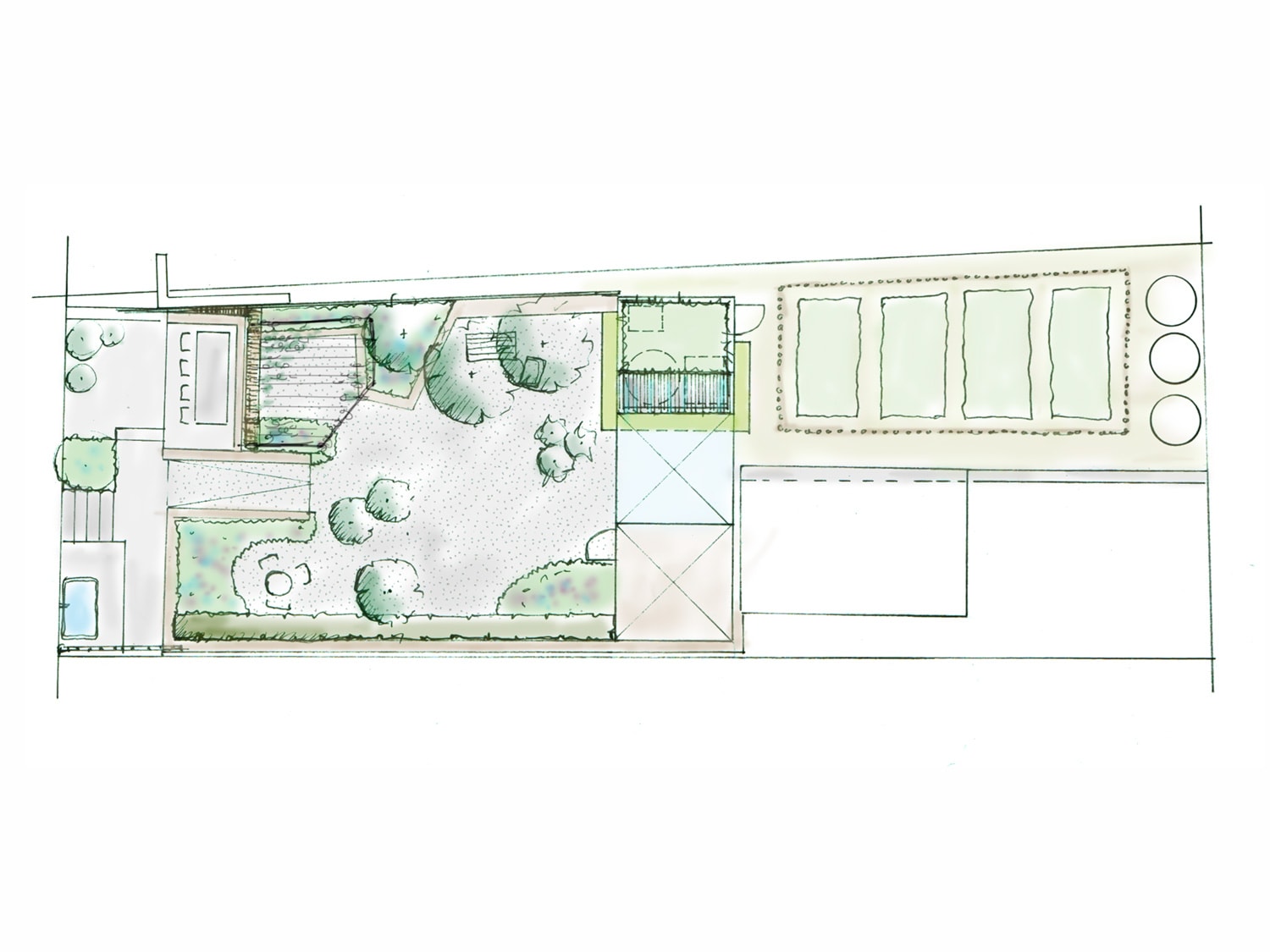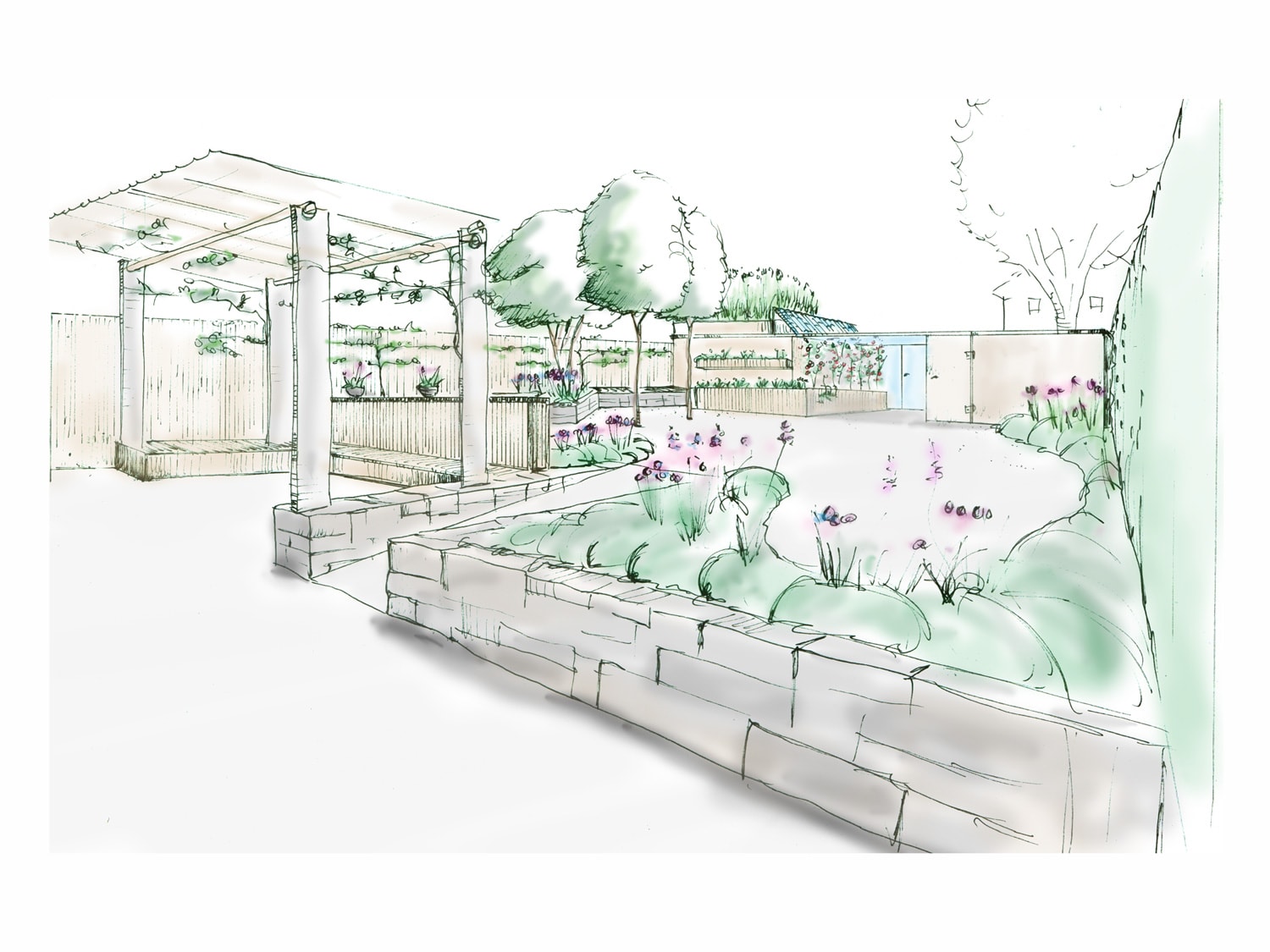 Die junge Bauherrschaft möchte einen Garten den Sie vielseitig über lange Jahre nutzen können. Das Grundstück ist in einer leichten Hanglage und soll Terrassiert werden um eine sinnvolle Nutzung zu ermöglichen. Es soll ein gestalteter Naturgarten, mit Naturstein und Pflanzen sein, ein Lebensraum für Mensch und Tier. Ebenso war es wichtig eigene Nahrungsmittel an zu bauen und den bestehenden Gemüsegarten zu integrieren.