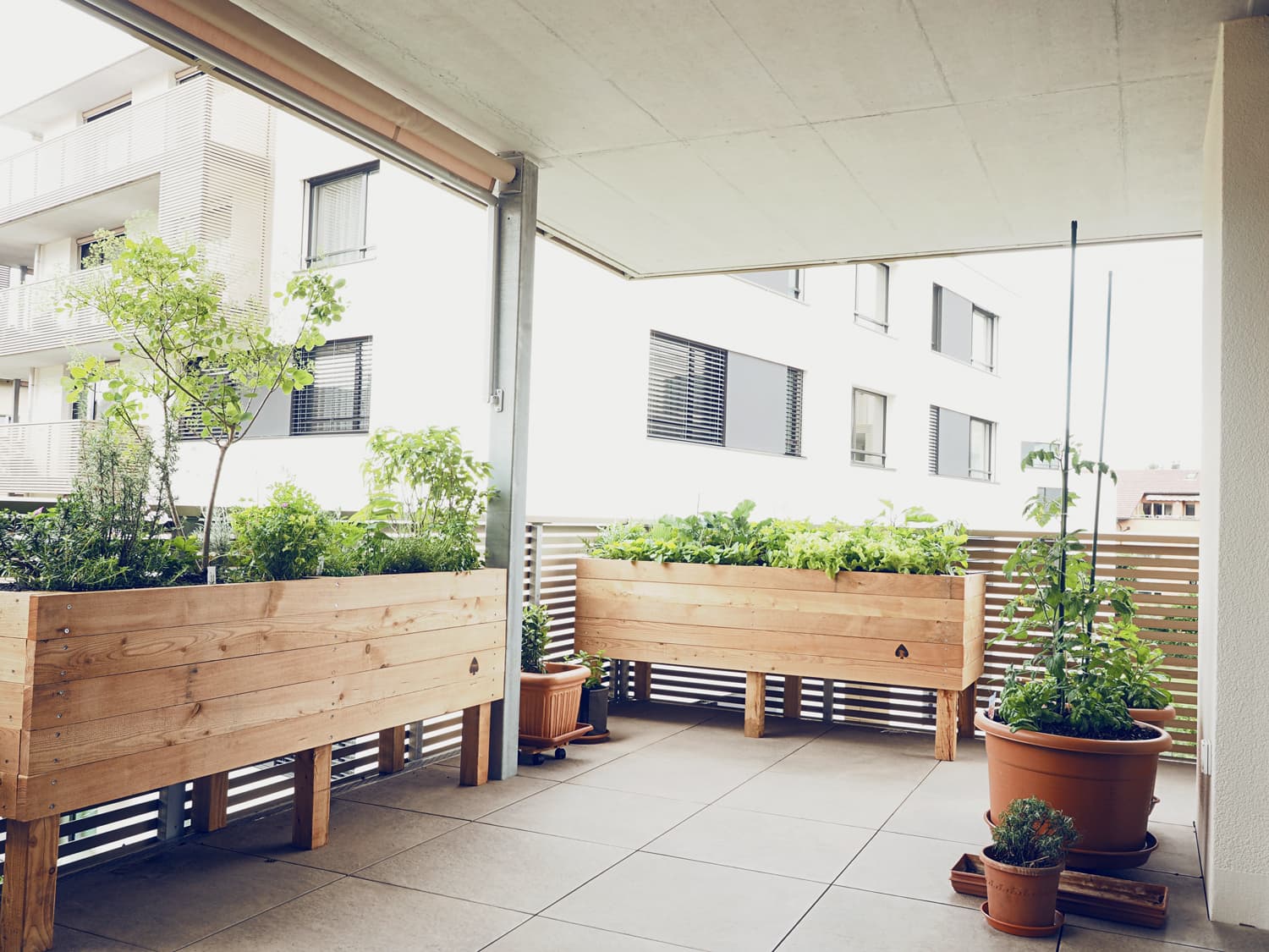 Die Bauherrschaft, ambitionierte Gärtner, ist vom Einfamilienhaus in einen Block gezogen. Der Wunsch: Kräuter und einen Teil Gemüse selber anbauen zu können und den Garten wieder vor der Tür zu haben.