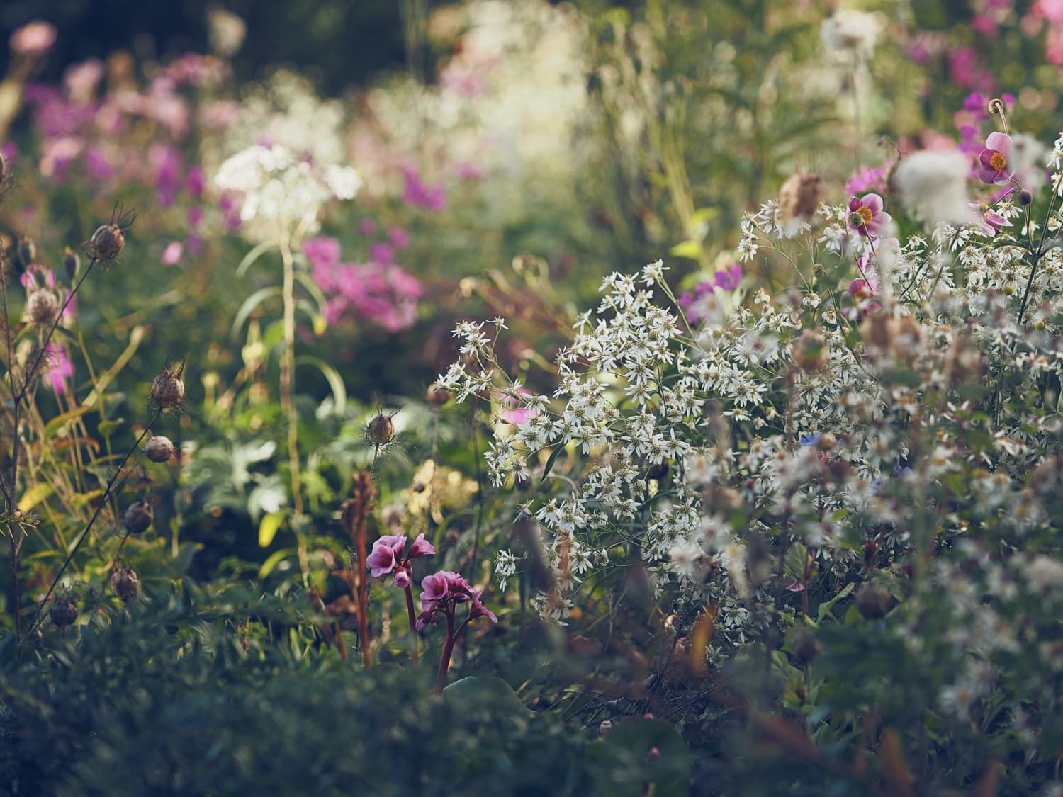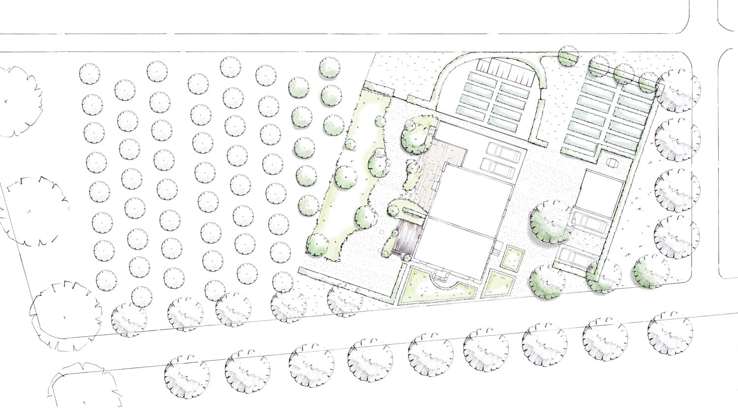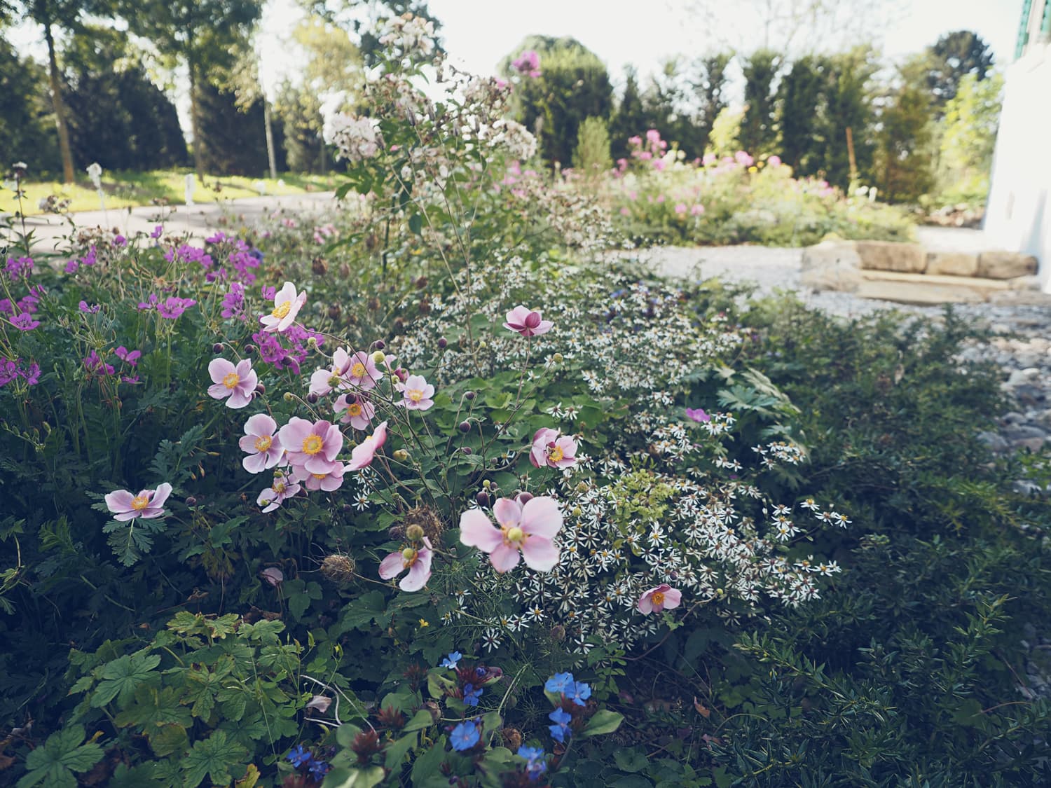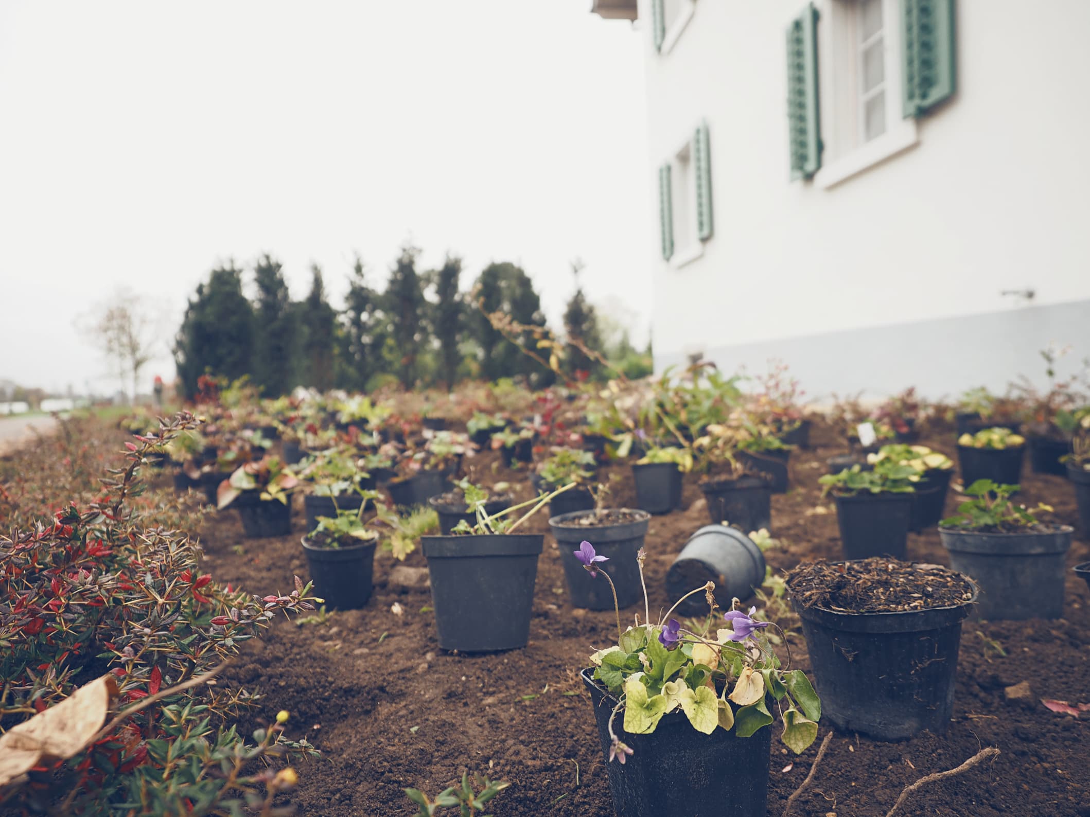 Im Eingangsbereich wurden die Blumenbeete mit Kleinhecken eingefasst und sollen so über die Jahre das klassische Bauernhausbeet zeichnen. Auf der Westseite wurden zwei Gärten für zwei Parteien realisiert. Die Raumaufteilung wurde so gestaltet, dass beiden Parteien ein privater und ein gemeinsamer Bereich zur Verfügung steht. Der Übergang zum Kulturland der Baumschule wurde fliessend mit einzelnen Solitärpflanzen gestaltet.