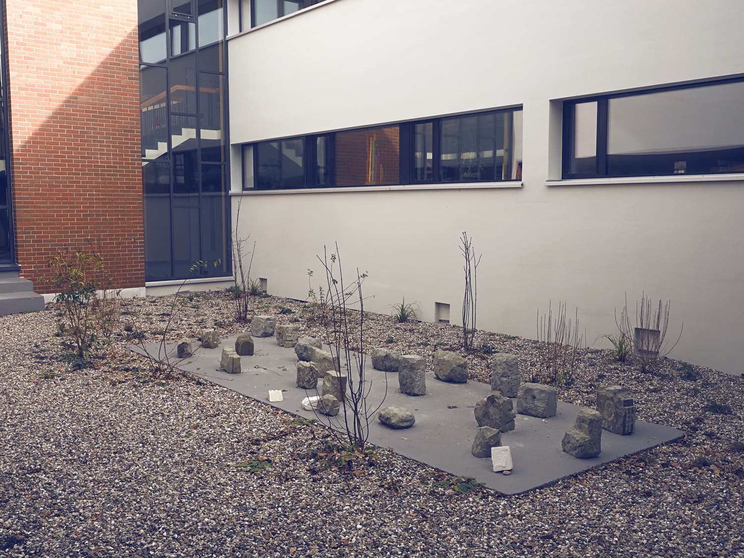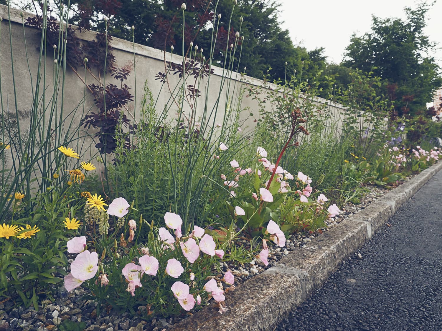 Der Bodenaufbau war in allen Flächen gleich und wurde in mehreren Schichten aufgebaut. Wandkies, Pflanzsubstrat und Splitt. Mit der obersten Lage aus Splitt, welcher als Mulchmaterial eingesetzt wird, sind diese Pflanzsysteme unterhaltsarm. Für die unterschiedlichsten Standorte vom tiefen, nassen Schatten bis zur prallen Sonne mit Abstrahlungswärme wurden die Pflanzen nach Lebensbereichen ausgewählt und garantieren damit funktionsfähige Systeme.